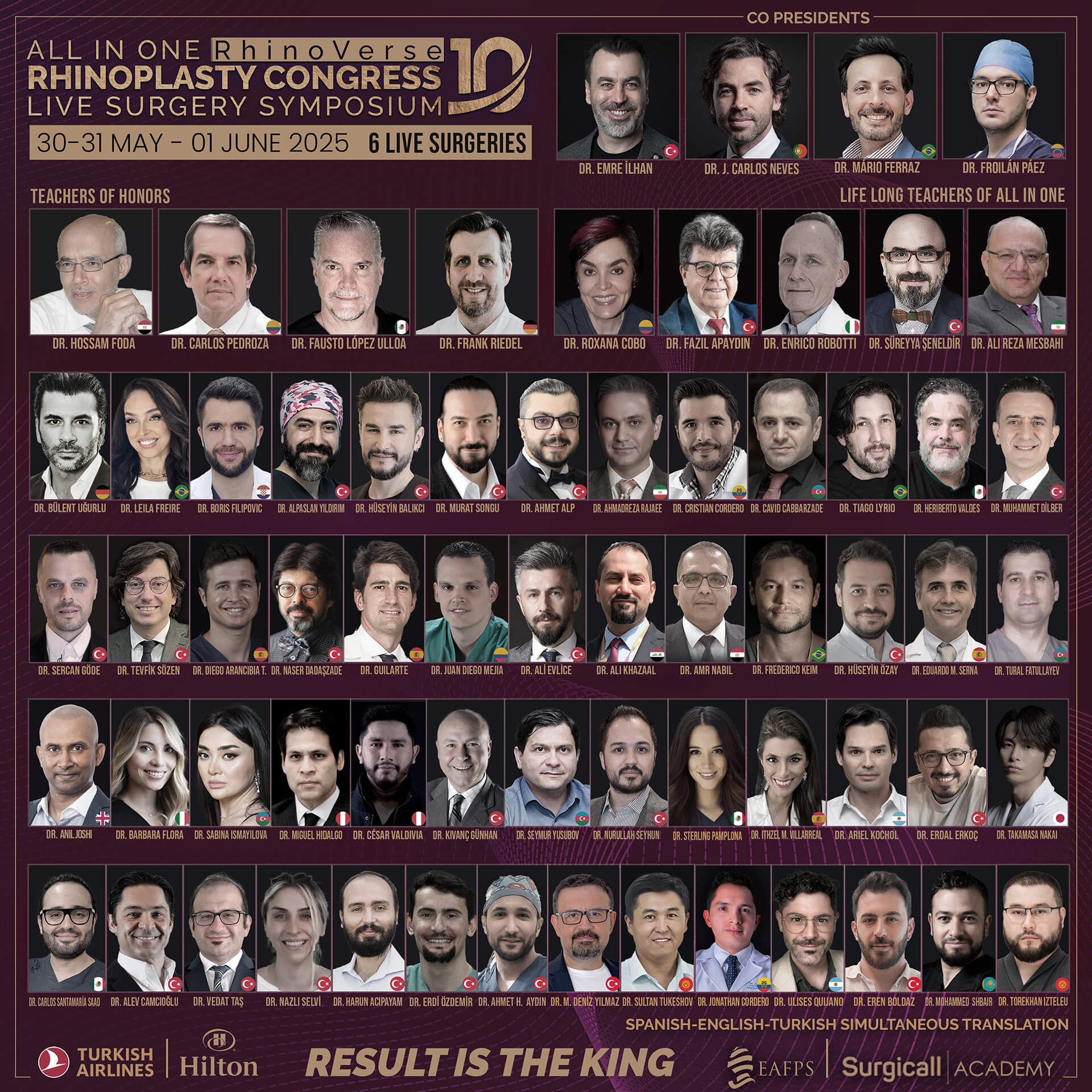 • Faculty for live surgery (sample): Emre İlhan, José Carlos Neves, Froilan Paez, Cavid Cabbarzade, Ahmadreza Rajaee, Tiago Lyrio.
